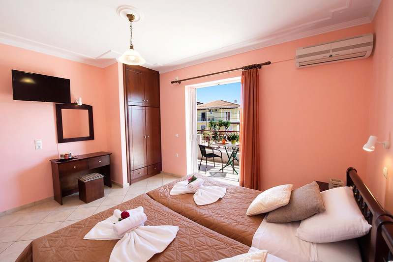 Situati a Perighiali, in posizione leggermente elevata alle porte di Nidri, sull’isola di Lefkada. Mare a circa 500 metri, servizi e locali facilmente raggiungibili.